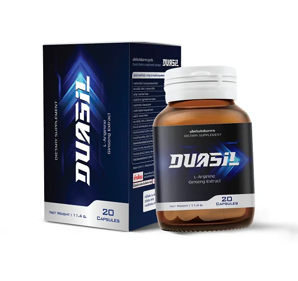 Duasil เป็นแคปซูลเสริมสมรรถภาพชายสูตรเข้มข้น จาก ส่วนประกอบธรรมชาติ 100% เช่น ถั่งเช่า, แอล-อาร์จินีน, โสม, บีทรูท และลูกซัด ออกแบบมาเพื่อช่วยแก้ปัญหา การหลั่งเร็ว และ การแข็งตัวไม่เต็มที่ โดยทำงานบนหลักการฟื้นฟูจากภายใน